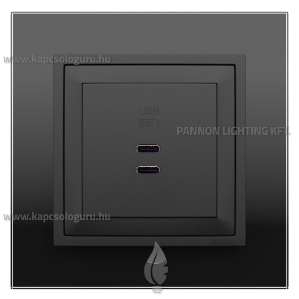 USB C töltő aljzat, Dupla - 3A, IP20, fekete fedőlappal és Crystal fekete üveg 1-es kerettel - EFAPEL LOGUS 90